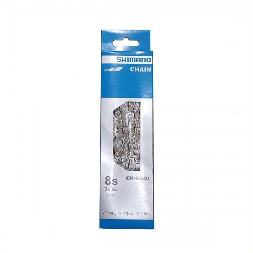 The Shimano chain CN-HG40 is suitable for Shimano 7/8-speed gears as well as older 6-speed HG sprockets (18/21/24 speed gears). A Quick Link chain lock for easy connection is included.