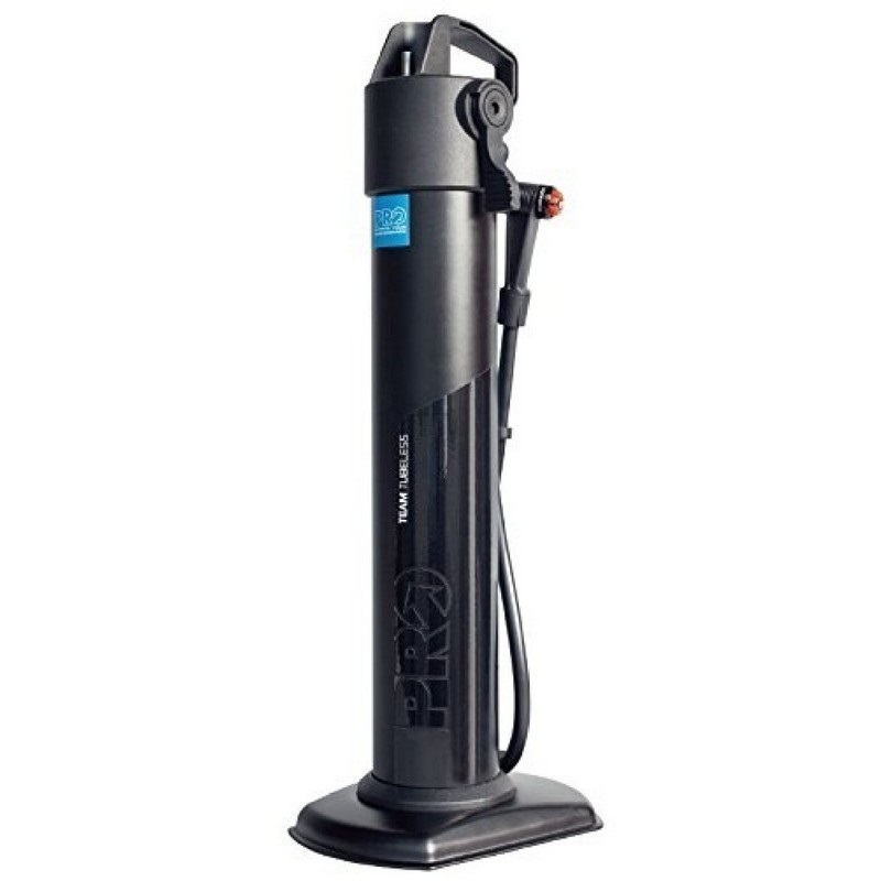 The PRO Compressor Team Tubeless is a high volume and high-pressure pump alternative to a compressor for seating tubeless tyres.