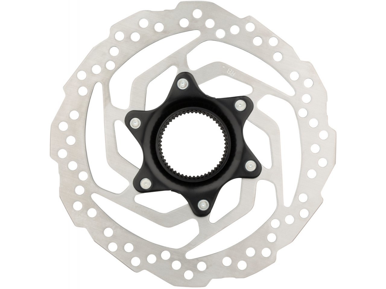 In contrast to its predecessor, the Shimano SM-RT10 brake disc has a black lockring, which is characterised by a special design with internal and external toothing. Only use the SM-RT10 brake rotors with organic brake pads.